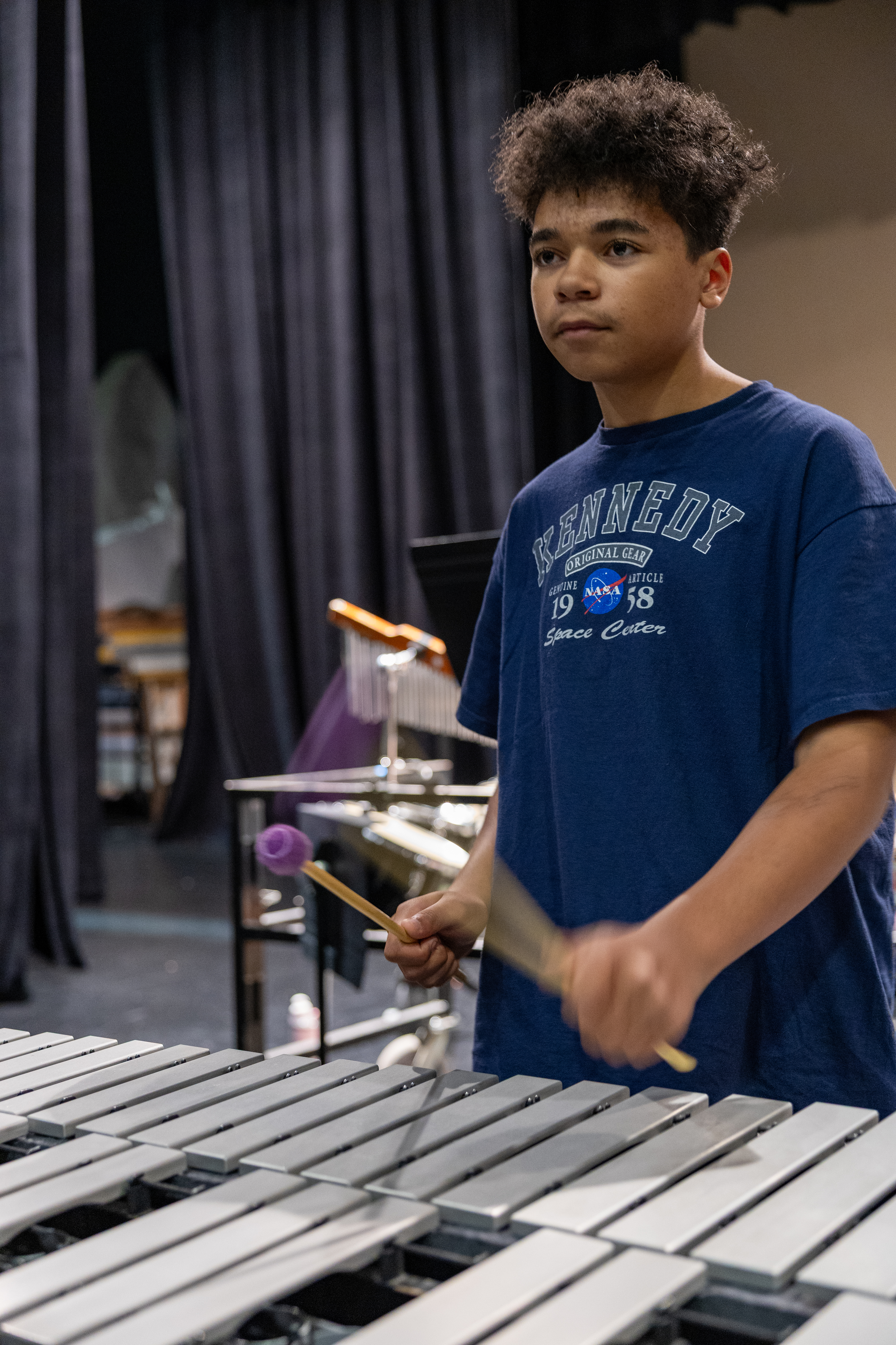 After the fall marching season, I tried the Herriman Indoor Percussion Band. The music was beautiful and the experience was great, but the inflexible schedule made it hard to continue. I played Vibraphone 1 (Closest to Middle) in our show Just Listen.